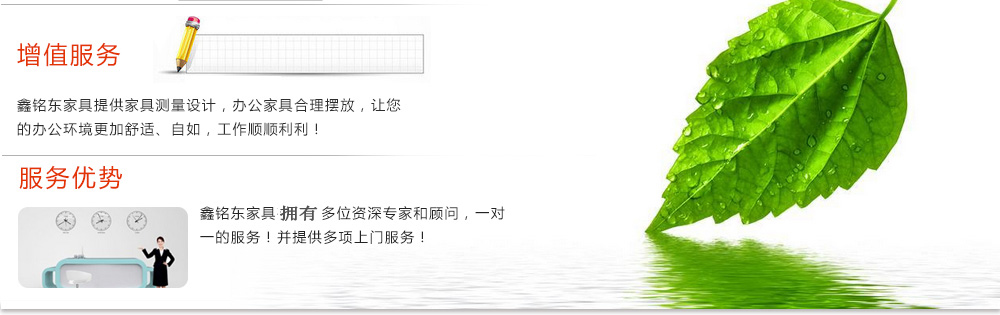 深圳市鑫銘東家具有限公司專業(yè)銷售各類辦公家具!產(chǎn)品涉及多種系列,如:班臺、班椅、屏風(fēng)、會議桌、會議椅、辦公沙發(fā)、茶幾、辦公桌、文件柜、電腦桌椅、各式餐臺、餐椅、書柜等辦公家具。 鑫銘東家具擁有一批優(yōu)秀的家具設(shè)計(jì)、生產(chǎn)及營銷的專業(yè)人士和高素質(zhì)的管理隊(duì)伍。銘東家具以"先難后易"之戰(zhàn)略,在產(chǎn)品結(jié)構(gòu)、產(chǎn)品質(zhì)量及服務(wù)水平方面,均推陳出新,力求完善,精益求精。使我們的產(chǎn)品質(zhì)量保持在國內(nèi)外家具潮流的先進(jìn)水平,力求滿足客戶的特殊需求。鑫銘東家具多年來致力于環(huán)保、實(shí)用家具的設(shè)計(jì)與開發(fā),集生產(chǎn)、銷售、服務(wù)于一體。本著"以人為本"的設(shè)計(jì)理念,大量開發(fā)符合人體工程學(xué)的各種產(chǎn)品,以"誠信為本"的質(zhì)量方針,真材實(shí)料,認(rèn)認(rèn)真真做產(chǎn)品,實(shí)實(shí)在在做人。鑫銘東家具更致力于創(chuàng)造"零維修率"的制造境界,實(shí)現(xiàn)"沒有維修的服務(wù)才是最好服務(wù)"的口號》了解更多